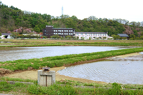 伊達温泉周辺の田んぼの水路にとうとうと水が流れていました。